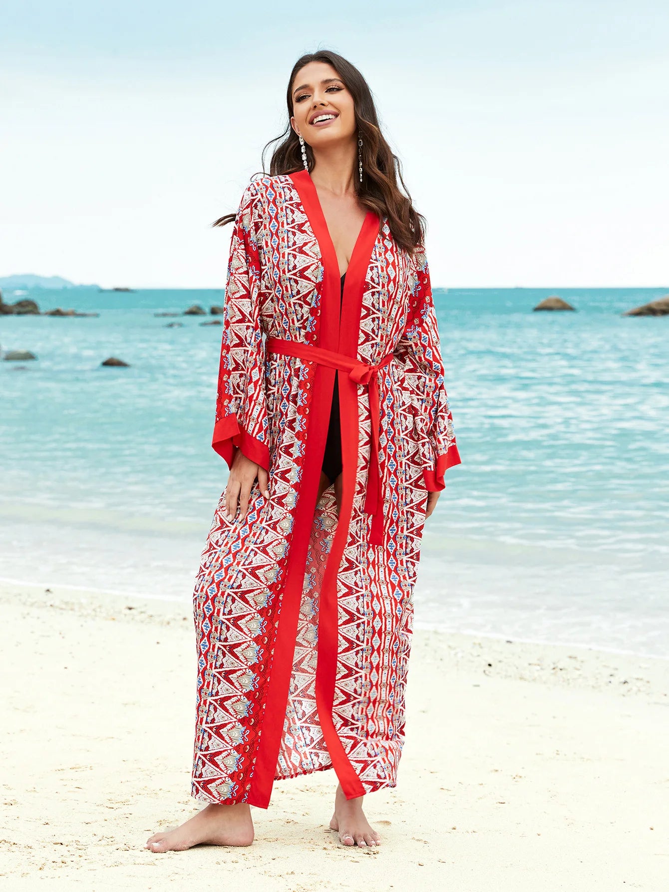 2026 Women Swimsuit Beach Cover Up dress Sleeve Kaftan Beach Tunic Long Pareos Bikinis Cover ups Summer Robe Plage Beachwear