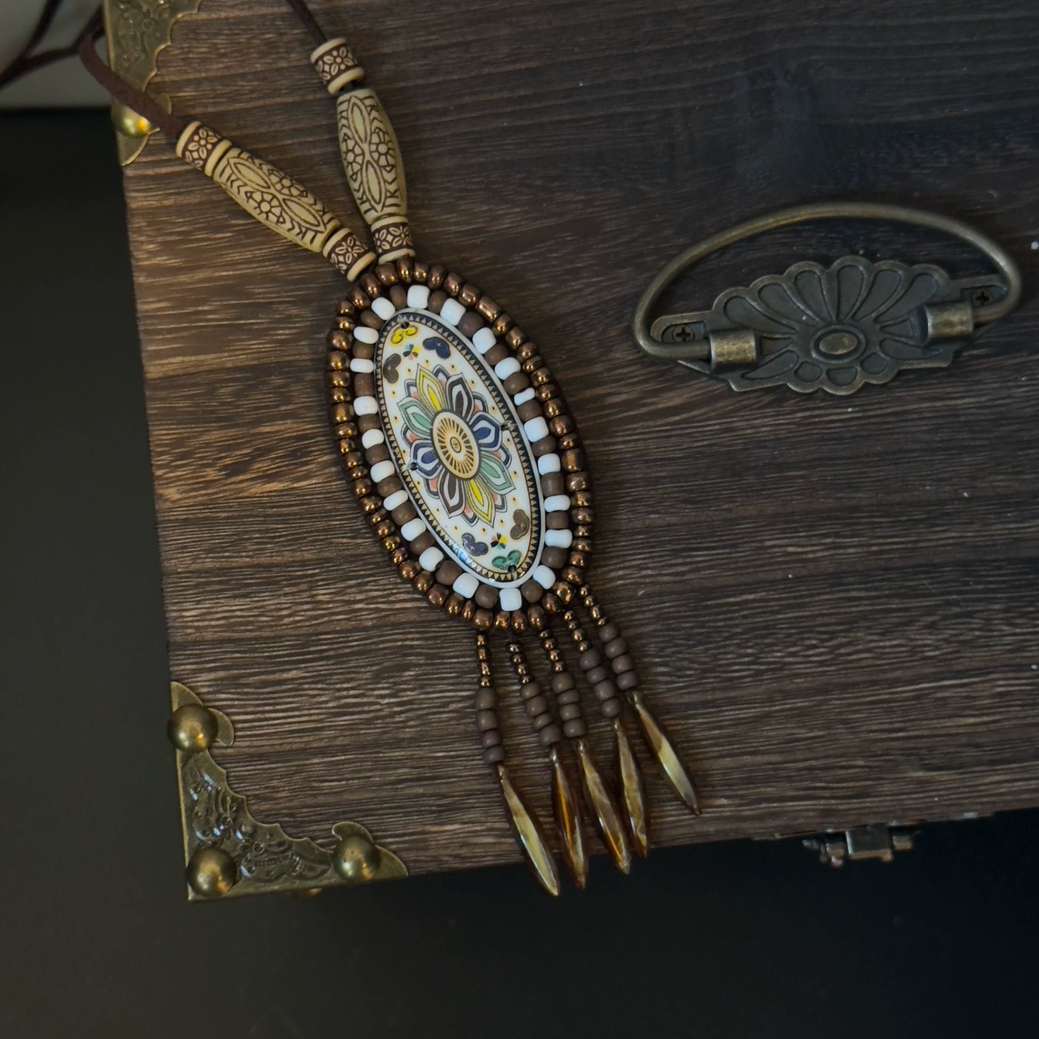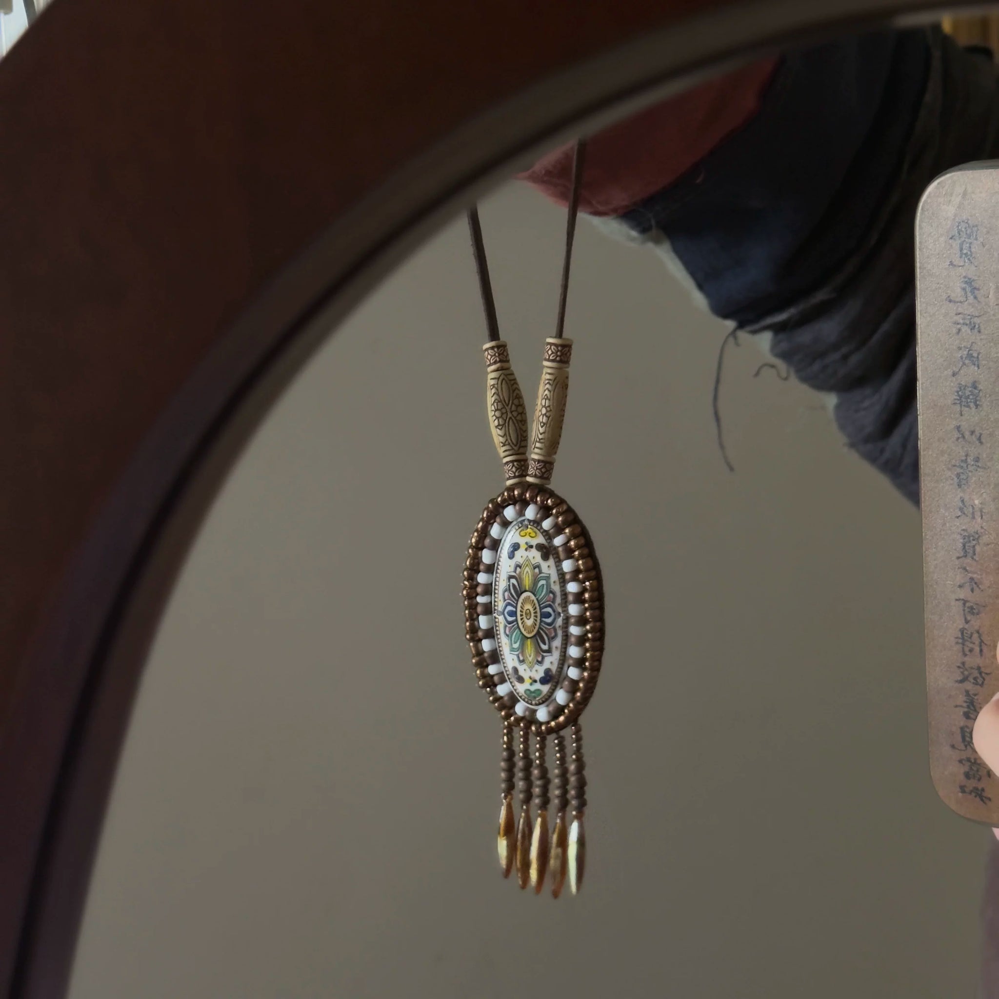 New Tibetan Ethnic Style Retro Old Ceramic Niche Design Art Necklace Sweater Chain