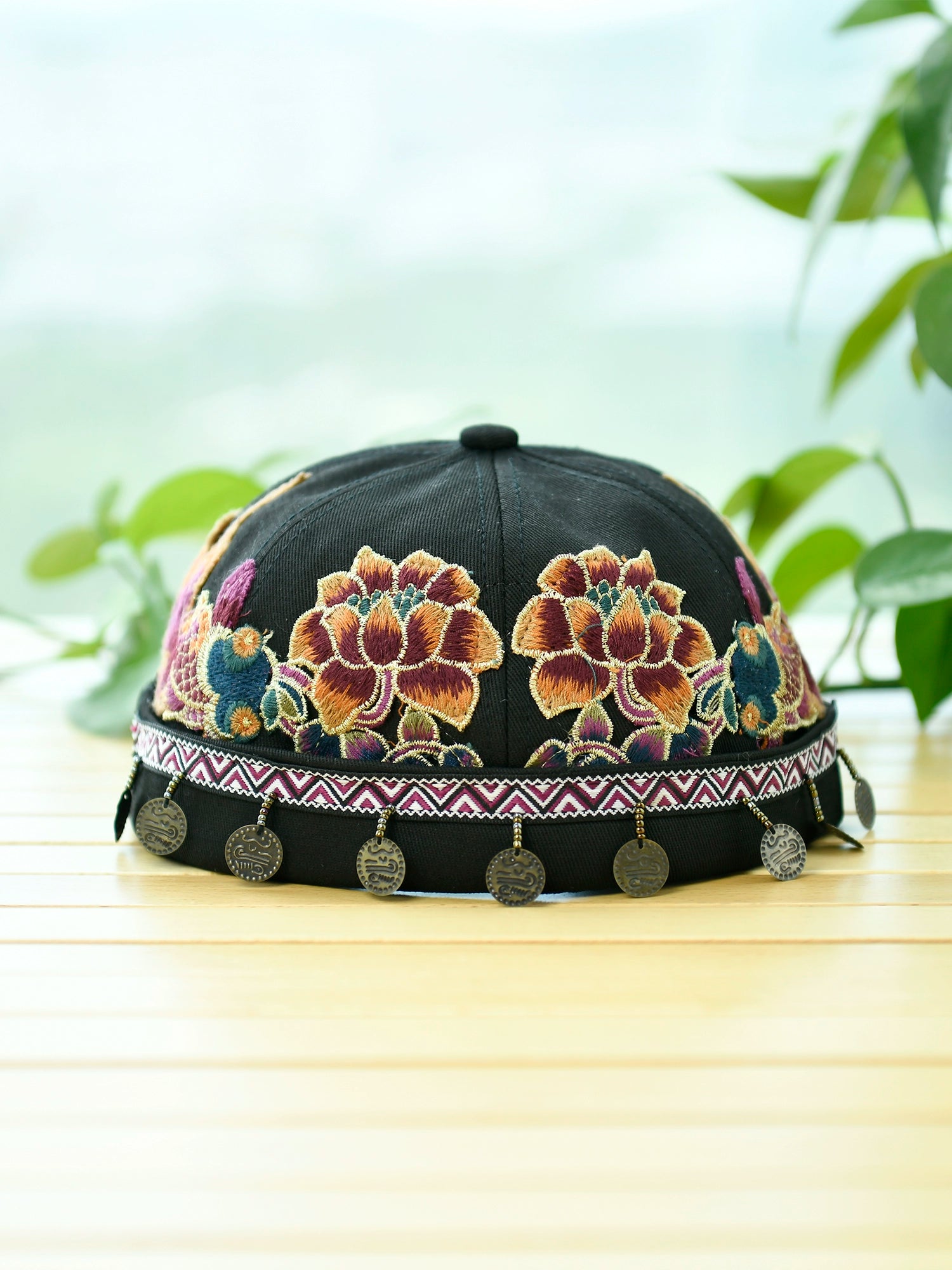 Ethnic Style Embroidery Fringed Hat Retro Personality Brimless Spring and Summer Yuppie Watermelon Hat Trendy Landlord Melon Fur Hat