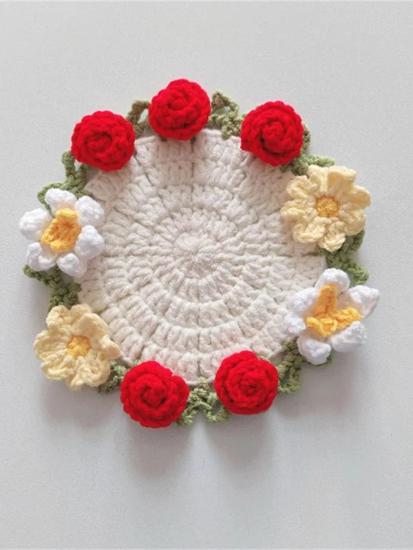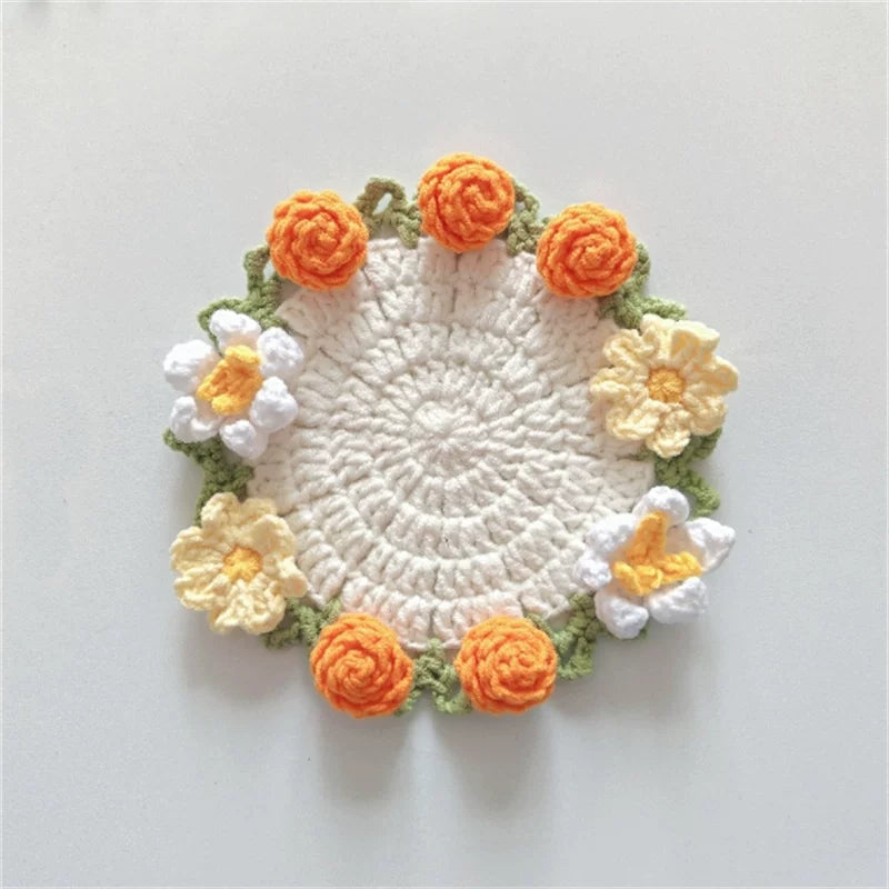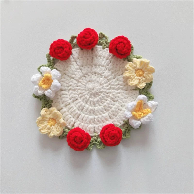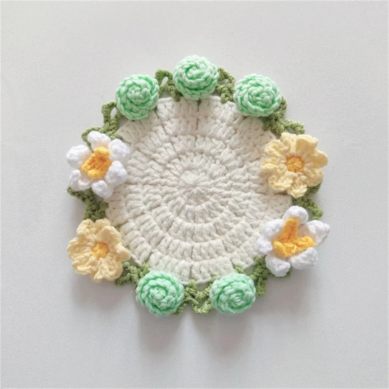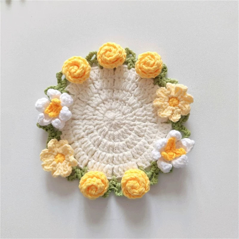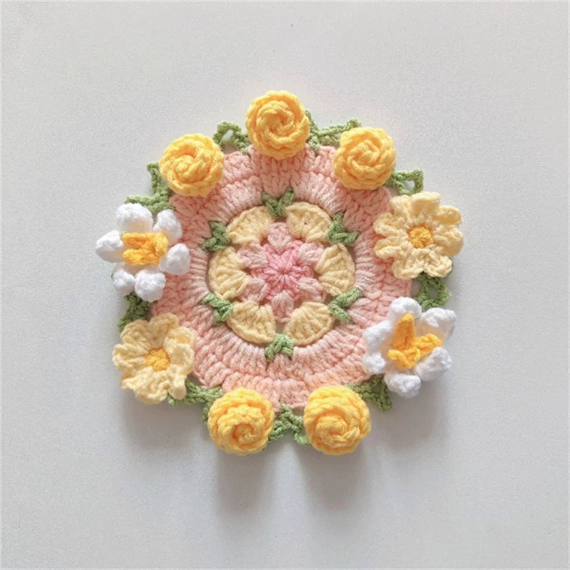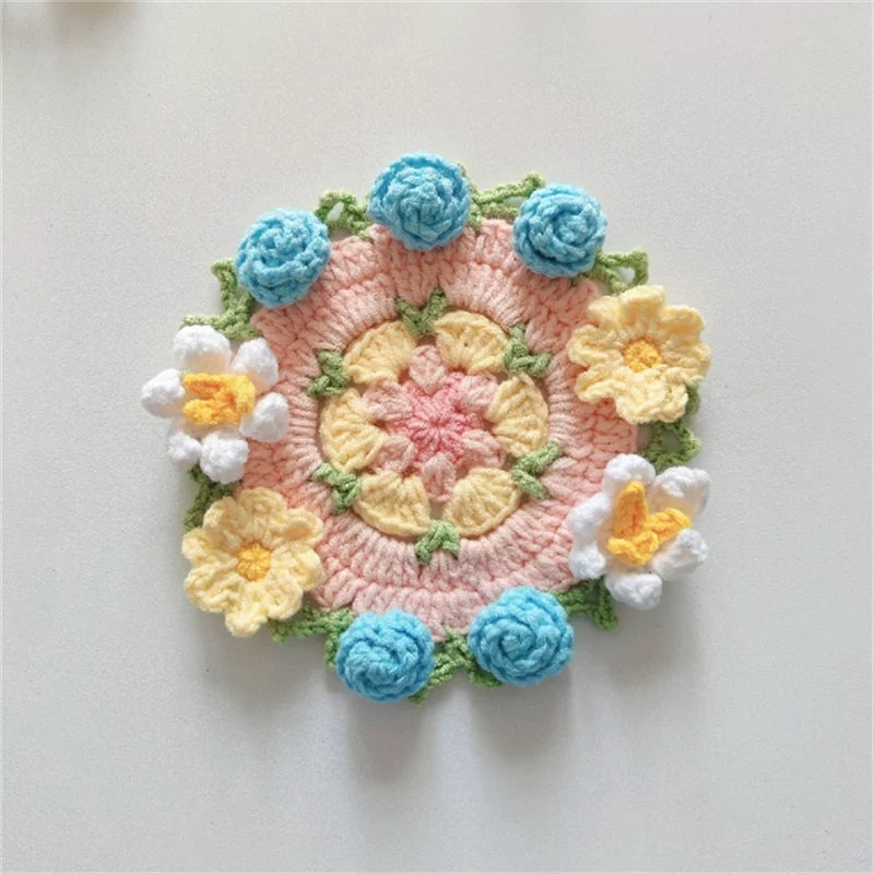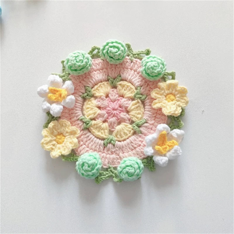 Hand-crocheted Coaster Finished Product, Flower Wool, Flower Insulation Pad